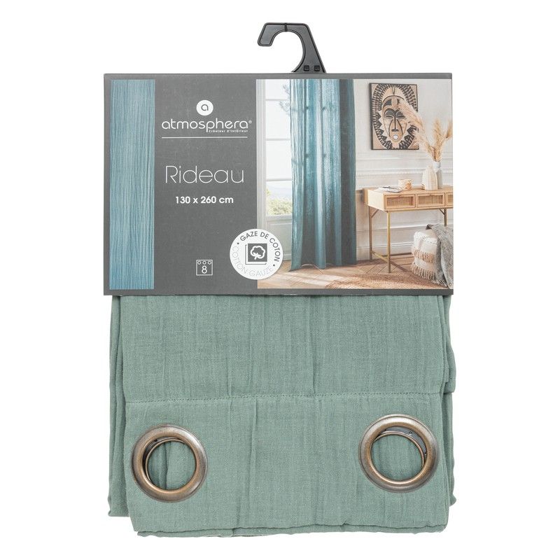 Jamana-Vorhang aus grüner Baumwollgaze, 130 x 260 cm